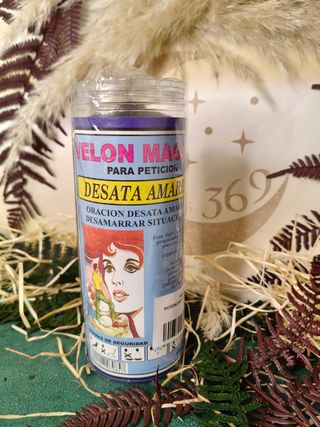 Este velón está listo para usar, ideal tanto para limpiezas profundas como para procesos de cierre de ciclos y recuperación del poder personal. ✨ Características principales: • Velón ritualizado Desata Amarres • Incluye oración impresa • Aceite de unción para consagrar el ritual • Ideal para liberar ataduras, cortar lazos energéticos y desbloquear caminos • Preparado para realizar tu petición de forma sencilla y efectiva Un ritual completo para soltar cargas, cerrar etapas - Etiqueta con ilustración de mujer y hombre. - Instrucciones de uso y normas de seguridad incluidas. - Potente para desatar nudos y ataduras.