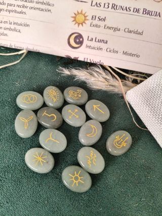 Un set pensado para acompañar lecturas de runas, rituales, meditación y trabajo energético personal. ✨ Perfectas para: Lecturas de runas y orientación espiritual Rituales de armonía y crecimiento personal Meditación y equilibrio emocional Trabajo intuitivo y energético 🔮 Contenido del set: 13 runas de Aventurina verde Bolsita de guardado Instrucciones Caja - Material: Aventurina verde. - Cantidad: 13 runas. - Incluye guía informativa.
