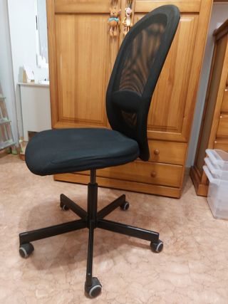 Silla de oficina ergonómica con respaldo de malla y asiento acolchado. - Base de 5 radios con ruedas para fácil movilidad. - Altura ajustable. - Diseño moderno y funcional.