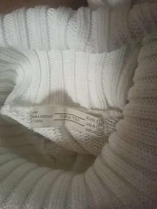 Jersey de Zara en color blanco con cuello alto. - Cuello de canalé. - Puños y bajo de canalé.