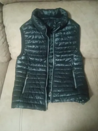 Chaleco acolchado de color negro. - Cierre de cremallera. - Dos bolsillos laterales con cremallera. - Cuello alto.