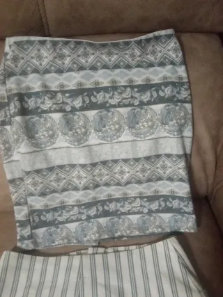 Conjunto de dos faldas con diferentes estampados. - Falda superior con estampado de rayas y motivos circulares. - Falda inferior con estampado de rayas verticales. Talla M. Falda , uedan acopladotas y muy cuca