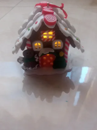 Adorable casita decorativa con luces LED integradas, perfecta para añadir un toque festivo. - Diseño inspirado en una casa de jengibre. - Detalles de glaseado blanco y bastones de caramelo. - Ventanas iluminadas con luz cálida.