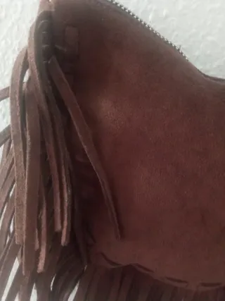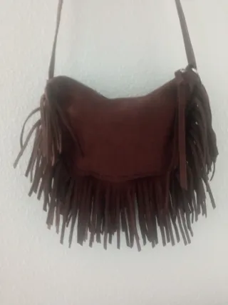 Bolso de ante en color marrón con un diseño de flecos. Esta nuevo. - Material: Ante - Color: Marrón - Adorno: Flecos