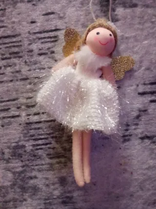 Adorno de angelito perfecto para decorar. - Cuerpo de fieltro. - Vestido blanco brillante. - Alas doradas con purpurina.