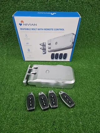 Nivian Cerrojo Invisible Electrónico Inalámbrico – Cerradura Antivandálica por Radiofrecuencia con Mandos a Distancia, Doble Motor, Apertura y cierre desde Interior y Exterior (Sin App). Nuevo, pero tiene algunos pequeños rayones en la tapa frontal, que se pueden apreciar en la foto y no afectan su funcionamiento. B- 825081