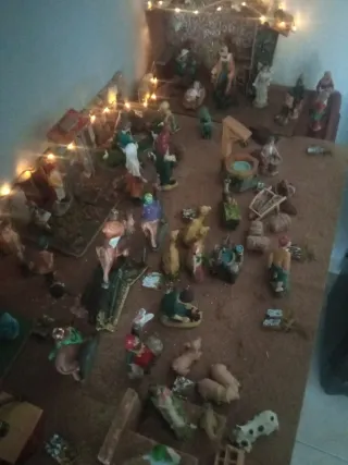 Completo belén con figuras y accesorios para montar tu escena navideña. - Incluye varias figuras humanas y animales. - Diversos elementos decorativos y de construcción. - Ideal para crear un ambiente festivo.
