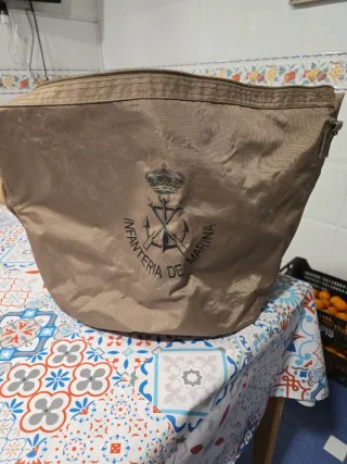 Petate de la Marina Española. - Color: beige. - Material: tela resistente. - Cierre de cremallera.