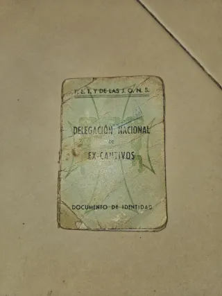 Documento de identidad de la Delegación Nacional de Ex-Cautivos. - Texto: F.E.T. y de las J.O.N.S. - Texto: Delegación Nacional de Ex-Cautivos. - Texto: Documento de Identidad.