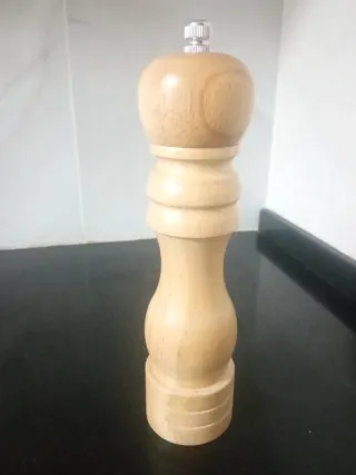 Molino de pimienta de madera con tapa metálica. - Diseño clásico y funcional. - Mecanismo ajustable para la molienda.Medidas: 21 alto x 5 de circunferencia.
