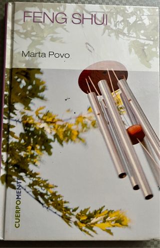Libro sobre Feng Shui escrito por Marta Povo. - Explora los principios del Feng Shui. - Cubierta con diseño de carillón de viento y hojas.