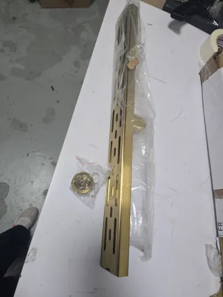 Este desagüe tiene un acabado elegante y moderno. Desagüe Lineal para Ducha, desagüe de Suelo Invisible Dorado, Bandeja de Ducha Rectangular de Acero Inoxidable, Drenaje Largo, desagües de Suelo lineales - Diseño con ranuras. - Incluye tapa redonda decorativa.