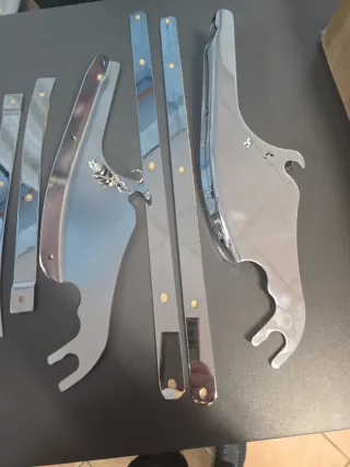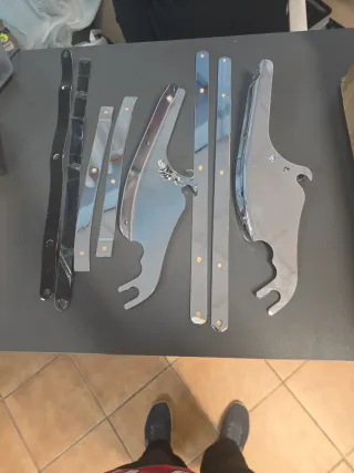 Conjunto de soportes metálicos con acabado cromado. Soportes desmontables King sice Compatible con Road King (FLHR) heritage softail clássic ( FLSTC) Fat hoy ( FLSTF) No tiene tornillos