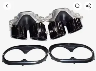 Juego de salidas de escape dobles y embellecedores negros. Para 2020 a 2024 Mercedes W177 A35 C118 CLA35 GLA35 X247 GLB35 modificación de escape AMG 45 boquilla de tubo de escape de silenciador negro - Salidas de escape de doble salida. - Embellecedores negros con diseño doble.