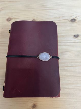 Funda de cuero estilo Louis Carmen para agenda A6. Un accesorio elegante y práctico. - Material: Cuero. - Color: Negro. - Cierre con goma elástica. - Incluye charm de estrella y charm de lazo.