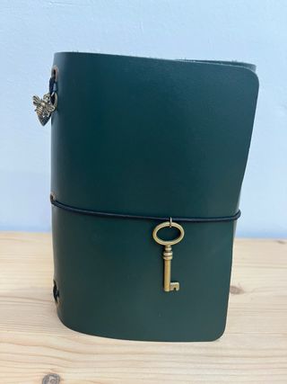 Funda de cuero verde con llave