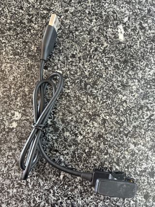 Cable cargador para Garmin Forerunner 735XT. Conecta tu reloj a la corriente para cargarlo. REGALO, CAJA, ORIGINAL Y RELOJ PORQUE NO FUNCIONA CORRECTAMENTE - Conector USB estándar. - Base de carga con clip.