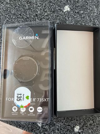 Cargador Garmin Forerunner 735XT, caja y reloj