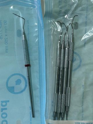 Kit profesional de instrumental periodontal marca ASA (Alemana). Muy poco uso, estado impecable, limpio y esterilizado. 🦷 Incluye 6 piezas: • 4 Curetas Gracey ASA (modelos 5/6, 7/8, 11/12, 13/14). Cubren todos los sectores. • 2 Sondas periodontales de medición. ✅ Acero inoxidable quirúrgico. ✅ Sin óxido, mangos firmes y ergonómicos. ✅ Listas para prácticas. Ideal para estudiantes de grado (2º-4º) o higienistas. 📍 Entrega en mano en Madrid. 📦 Envío por Wallapop.💰 45€ (Negociable).