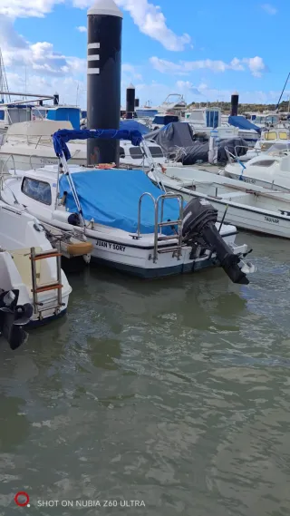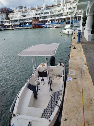 Barco de 4,71 metros de eslora con amarre incluido en Puerto Marina Barco perfecto para la pesca y buceo. Motor Suzuki 50cv recién echo el mantenimiento. El motor está perfecto. Bajo consumo de gasolina. Equipado con ancla de fondeo, vengalas, chalecos etc. Placa solar para cargar la batería y batería nueva cambiada en el mes de enero 2026. Tengo también altavoces y radio sin estrenar para montarselo, Radio VHF, y sonda. También tengo pintura para barco y esmalte , para pintarlo en color gris nardo por si se le quiere cambiar de color. - Eslora: 4,71 metros. - Amarre en Puerto Marina. -
