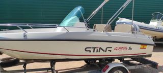 anto para pesca deportiva, como una salida con la familia o los amigos es perfecta para iniciarse o para experimentados. Disponemos del modelo Sting 485S con un motor SUZUKI 50cv con 30 HORAS!!! Eslora total: 4.88 m. Eslora homologada: 4.88 m. Manga: 2.03 m. Tipo embarcación: DayCruiser Motorización: SUZUKI 50cv Four Stroke Horas de motor: 30 h. EQUIPAMIENTO: Sonda Lowrance, Toldo Bimini inox 2021, Indicador trim y de gasolina, flaps integrados. NO LO DUDES, CONSULTANOS!