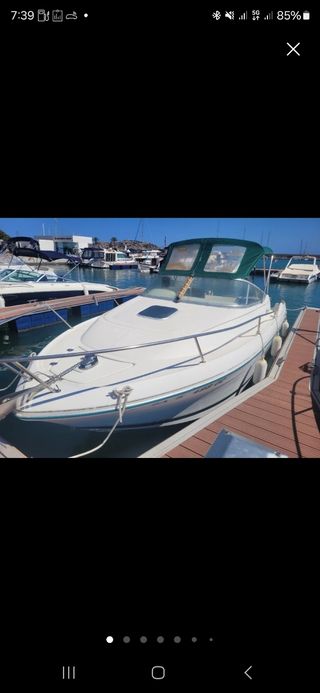 En venta barco Jeanneau 705 Leader en perfectas condiciones, esta muy cuidado. Barco muy comodo y sencillo, camarote interior, bañera grande, solárium en popa y proa, ducha en bañera. Motor Volvo 4.3 GXI Potencia total 225hp Horas de motor 340 Eslora 7,50m Manga 2,59m Año 2002 Combustible: Gasolina, Capacidad depósito carburante: 200L. Depósito agua dulce: 56L, Capacidad: 6 personas. Equipamiento adicional: Molinete eléctrico anclaje. Toldo abatible. Lavamanos-fregadero. Nevera. Emisora Radio VHF, tambien tiene radio VHF portátil con GPS, sonda Garmin y Raymarine (tiene 2) suelo Deckmarine en todo el barco, 2 baterias, escalera