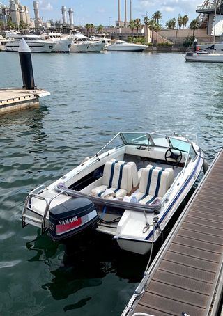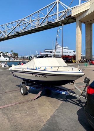 Lancha Glastron Larraya 4,30m, en buen estado, con documentación en regla. Motor fueraborda de 50cv de dos tiempos con tres carburadores. Lista para salir a navegar, luces, accesorios de navegación obligatorios, dos anclas (1 Danfort), sonda Garmin y salchicha neumática de recreo. El motor funciona pero cuando se calienta pierde potencia, hay que repararlo. Regalo remolque sin documentación Precio poco negociable