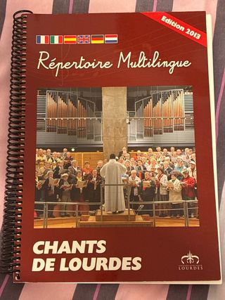 libro de partituras de Lourdes con muchos cantos en todos los idiomas.