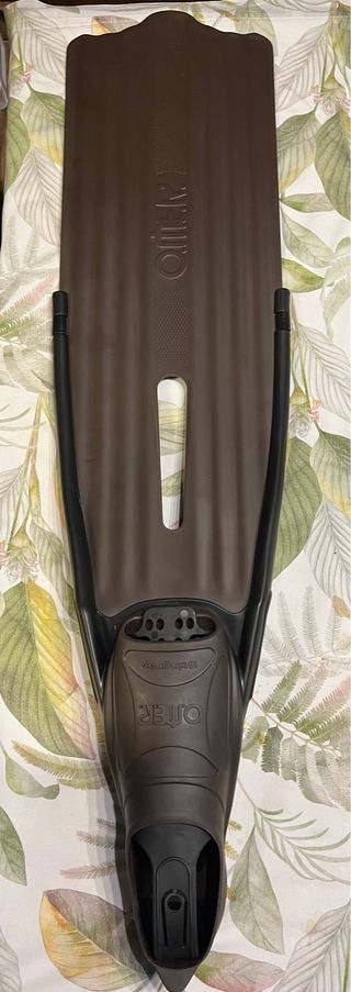Aletas de pesca submarina Omer Stingray Evo. - Talla 39-40 (equivalente a 5/6). - Pala de polipropileno. - Calzante de goma. - Color marrón. - nuevas a estrenar, nunca usadas