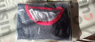 Pijama de Navidad para adulto, talla L. Ideal para estas fiestas. - Color azul marino con ribete rosa. - Composición: 65% poliéster, 35% algodón.