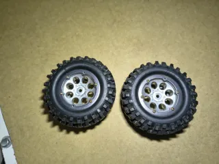 Juego de dos ruedas con llantas para escala 1/10. crawler-remolque. - Neumáticos de goma con tacos. - Llantas plateadas con detalles 1.9. - neumáticos 95X36mm