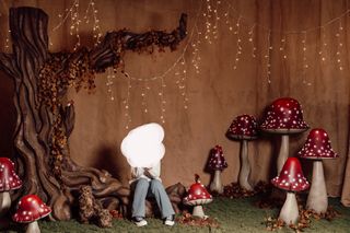 Set de decoración para sesiones de fotos navideñas. - Incluye elementos temáticos de bosque y setas. - Ideal para crear ambientes mágicos.
