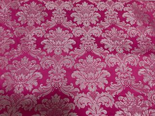 Tela de fallera con un diseño en damasco en color fucsia y tramas blancas. Ideal para confeccionar un vestido completo. - Medida: 5.50 metros de tela - Diseño: Damasco floral. - Color: Fucsia y tramas blancas