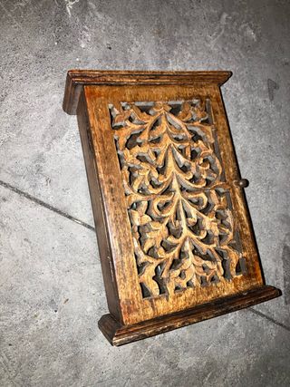 Pequeño mueble de madera con un bonito diseño tallado, ideal para organizar llaves. - Capacidad para 12 llaves. - Acabado en madera natural. No negociable 33cm de alto x 20 cm de ancho . Findo 5cm