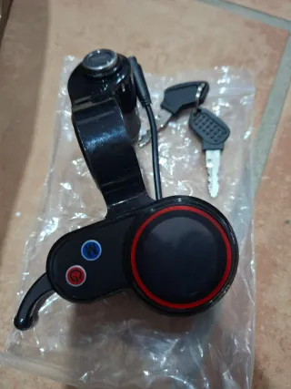 Manillar de repuesto para patinete eléctrico, incluye dos llaves para el encendido. - Diseño en color negro. - Botones de control (M, ON/OFF). - Encendido con llave.