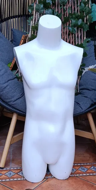Torso de maniquí para exhibición de ropa masculina. - Color blanco. - Diseño de torso completo.