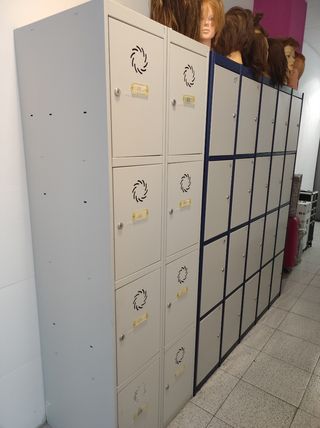 Se venden 24 taquillas metálicas de color azul. Son resistentes y están en buen estado. Son para poner candado. - Ideales para guardar objetos personales. - Fabricadas en metal resistente. - Color azul.