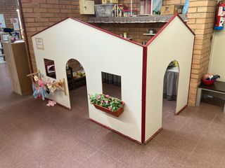 recogida en granollers Casita de juego para niños, juego simbòlico para escuela infantil o espacio educativo, ludoteca... la pared pequeña se abre con visagras i va anclada a una pared. la pared grande va anclada al seuelo y a una pared. no incluye maceta de flores ni colgador de ropa. - Estructura blanca con detalles rojos. - Ventanas y puerta de arco. medidas aproximadas de 2x2m , si te interessa pregunta , precio negociable joc simbòlic, caseta de joguina, escola, ludoteca, llar infants