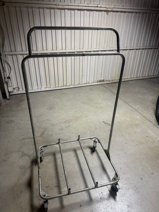 Carro vertical de metal para kart. - Estructura metálica resistente. - Ruedas para facilitar el transporte. - Diseño vertical. carro para dejar el kart de pie para ocupar menos espacio