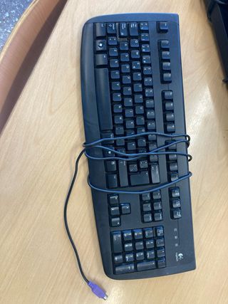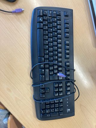 Teclado Logitech en color negro con conector PS /2 mini DIN 6 pines hay dos - Diseño estándar con teclado numérico. - Cable de conexión incluido. - Logotipo de Logitech visibl