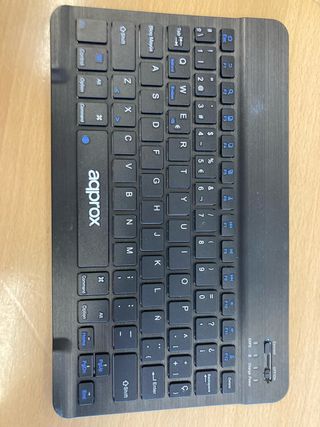 Teclado inalámbrico de la marca aqprox. Diseño elegante y compacto. - Teclas con disposición QWERTY. - Conexión Bluetooth. - Indicador de carga. - Botones de función y control. - conexion mini usb no tiene cable hay 14