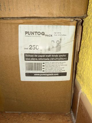 Bolsas de papel kraft con asas planas y reforzadas. (32+21x25cm) 3 cajas de 250 unidades cada una - Material: Papel kraft. - Tipo de asa: Plana y reforzada.
