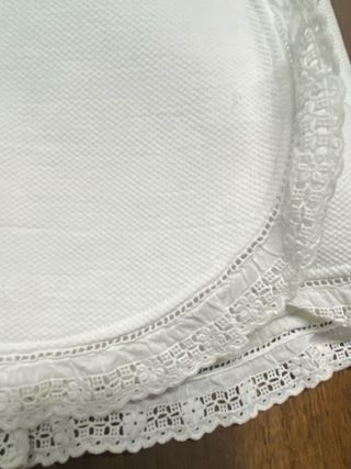 Camino de mesa o tapete de algodón con encaje y vainica 124x24cm