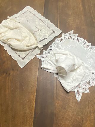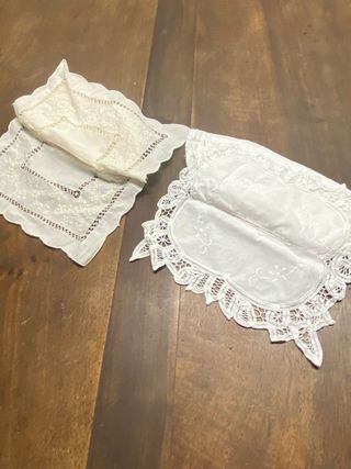 Conjunto de fundas decorativas para cajas de pañuelos. - Diseño de encaje. - Color blanco. Precio por las dos