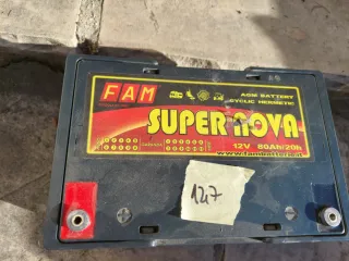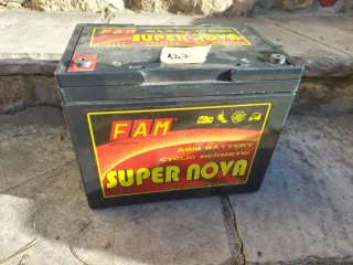 - Modelo: Super Nova - Marca: FAM - Voltaje: 12V - Capacidad: 80Ah - Tecnología: AGM (Absorbent Glass Mat) - Uso: Cíclico Hermético Estan usadas pero aun se pueden aprovechar. No esperad milagros. Pesa 24kg..actual precio de chatarra es 0.45e/kg Varias unidades disponibles