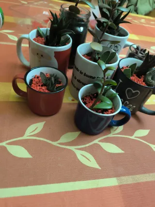 Conjunto de tazas decorativas con cactus, Regalo perfecto para amig invisible - Diseños variados de tazas. - Incluye diferentes tipos de cactus.