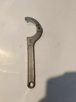 Llave de cisterna con diseño ajustable. - Fabricada en metal resistente. - Mango con orificio para colgar.