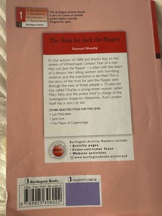 Libro de lectura The Hunt for Jack the Ripper de Samuel Sheehy, publicado por Burlington Books. - Nivel 1º Bachillerato. - Formato Activity Reader.