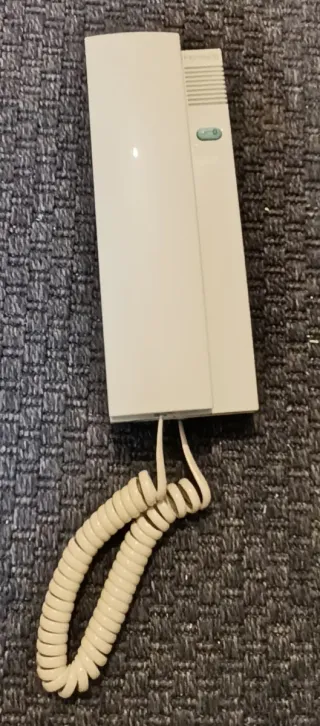 Telefonillo de color blanco, ideal para sistemas de intercomunicación. Fermax. Funciona bien. - Diseño moderno y compacto. - Cable en espiral para mayor comodidad.