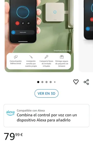 Intercomunicador inteligente Ring, compatible con Alexa para control por voz. No es compatible con mi telefonillo, así que no he podido usarlo jamás.